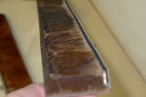 Rear Cockpit Trim in our customer's car - Before and After we reveneered and refinished if for them. |