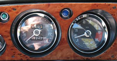 Gorgeous woodwork and gauges with chrome rings - what a beautiful combination for this car. |